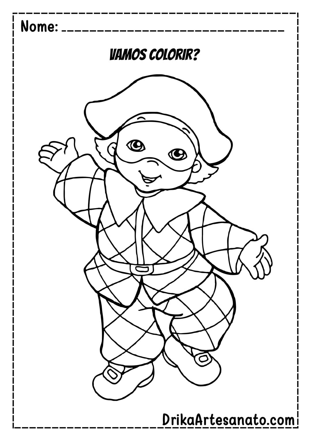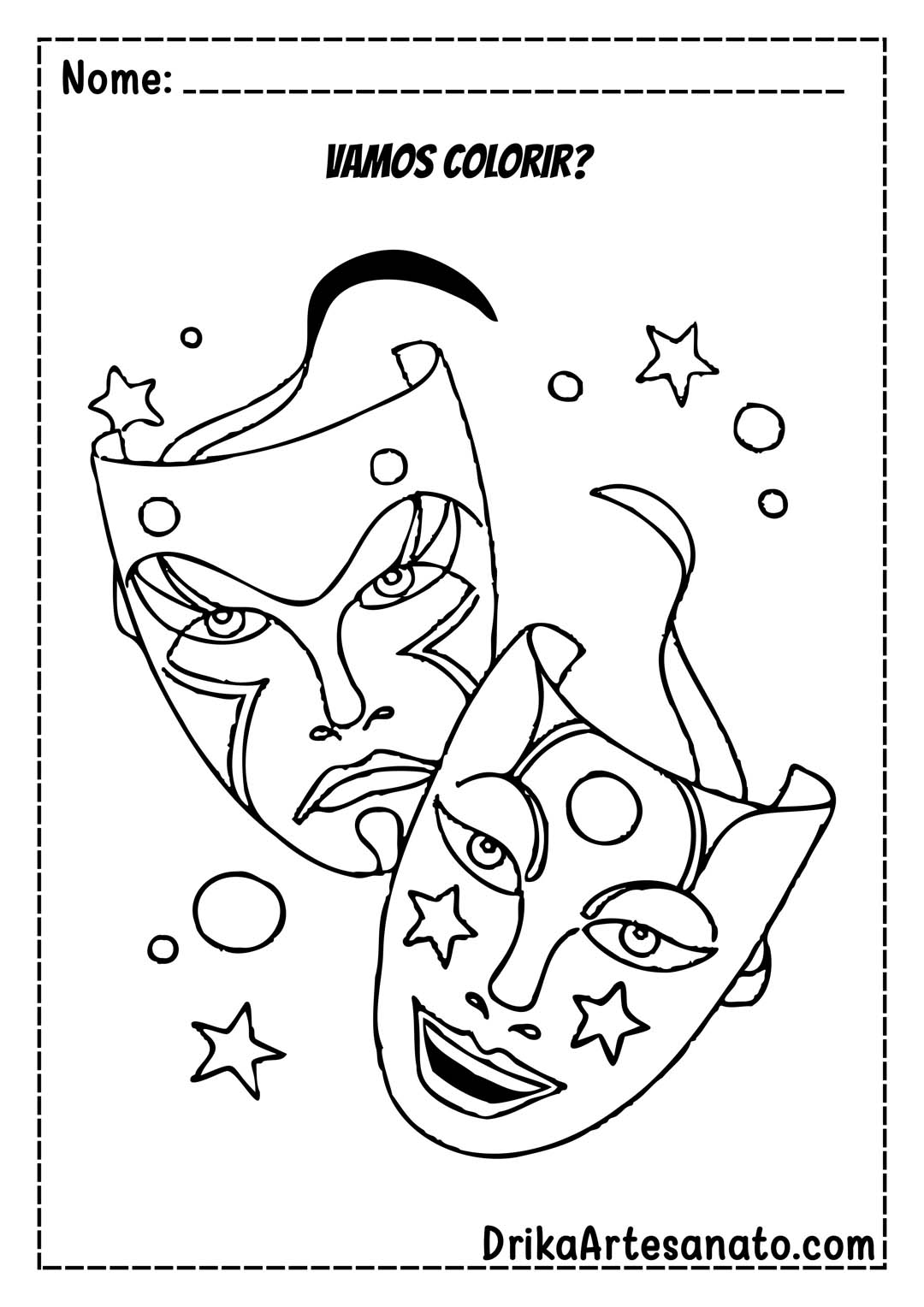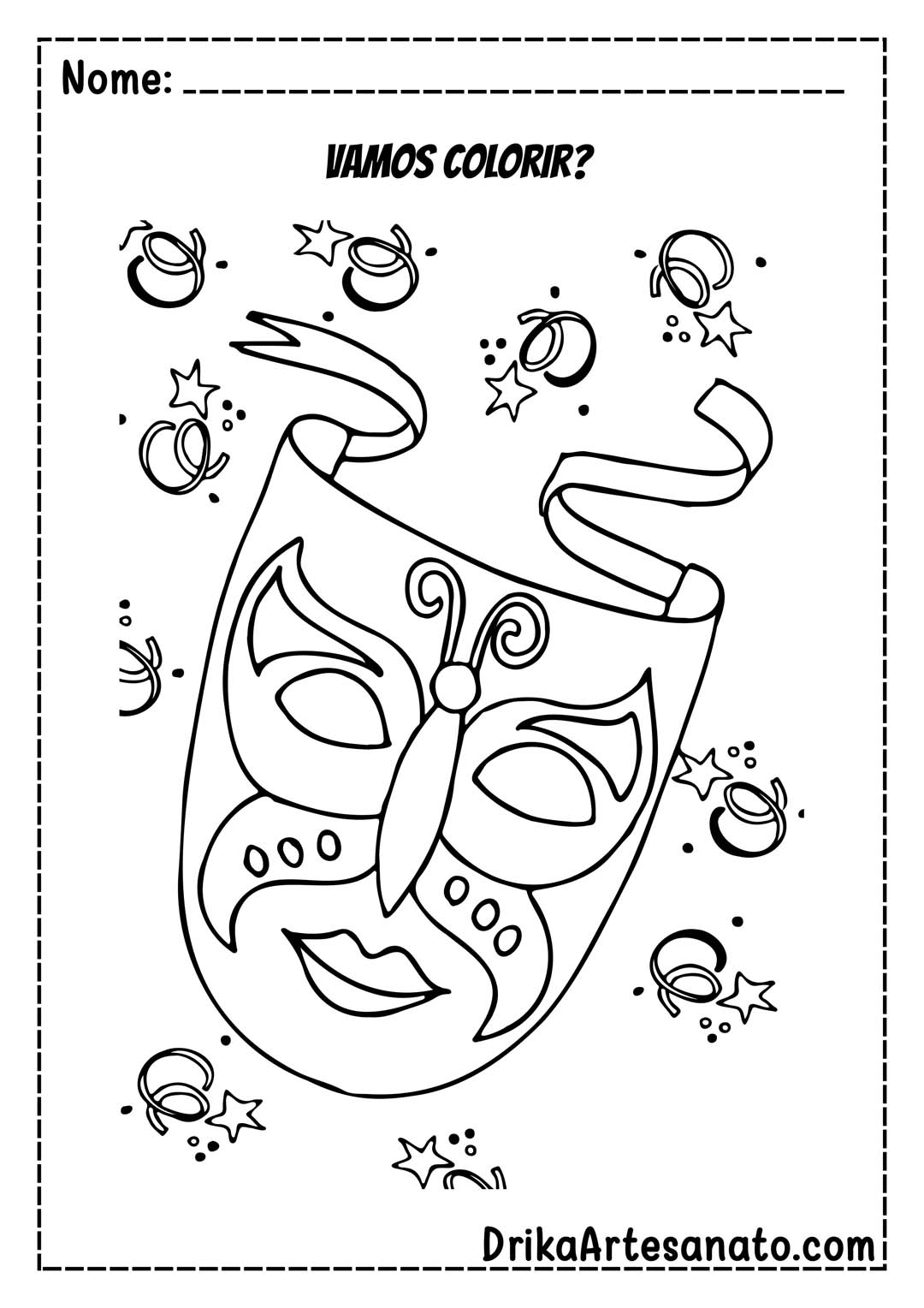 Além de ser uma atividade divertida, os desenhos de Carnaval para colorir e imprimir também contribuem para ensinar e explicar as crianças o que significa essa data comemorativa e quais são os seus principais elementos.