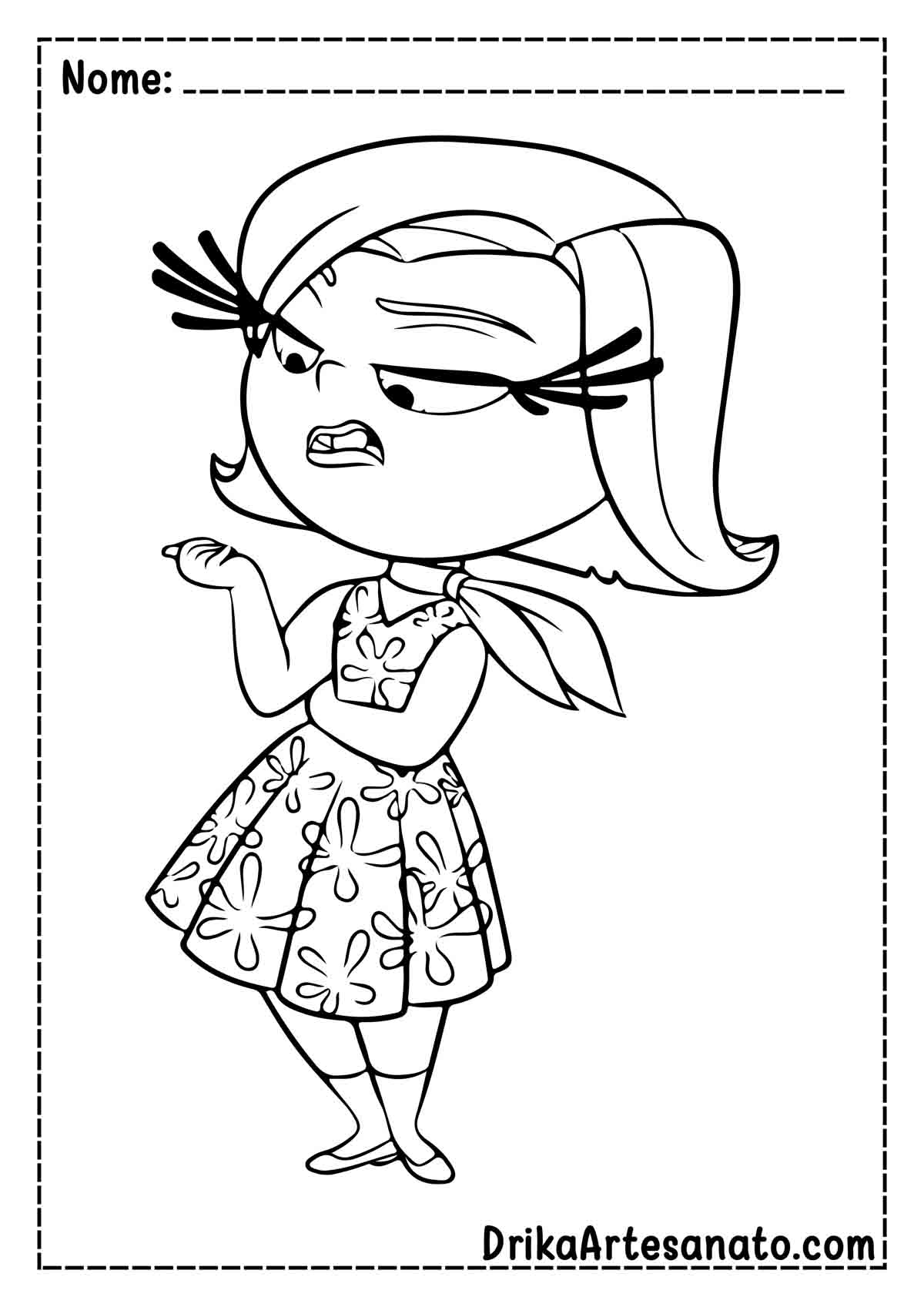 A Alegria está sempre brilhando! Com seu cabelo espetado e sorriso contagiante, ela espera ansiosamente pelas suas cores para iluminar a página.