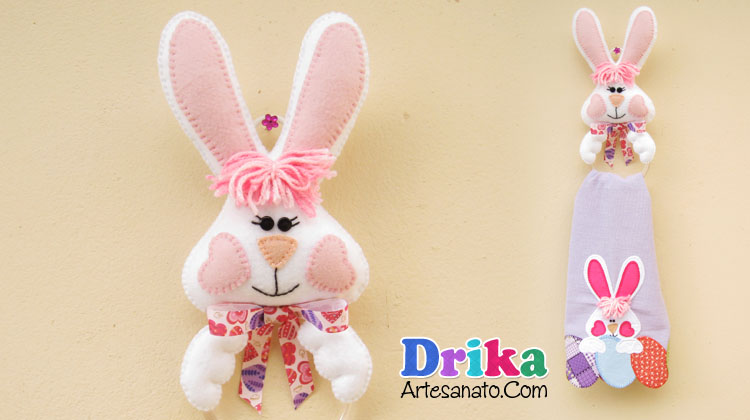 Porta Pano de Prato de Coelho da Páscoa em Feltro