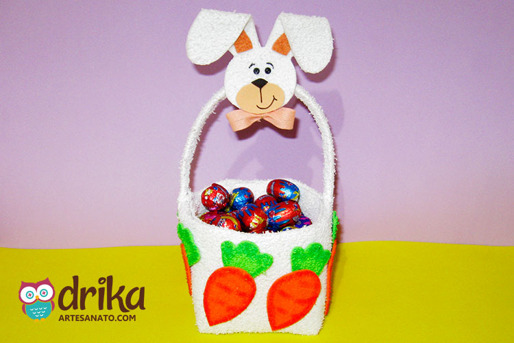 Este cesto com coelho de EVA é muito fácil de fazer e pode ser feito por qualquer pessoa que goste de artesanato. Além disso, é uma ótima opção de lembrancinha para escolas, igrejas e empresas. Com pouco investimento você pode ter um retorno financeiro muito bom. Venha conferir o passo a passo completo em nosso post!