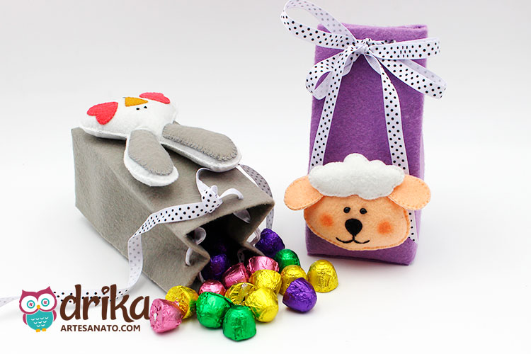 Lembrancinha de Páscoa com Saquinho Porta Caixa de Bis de Feltro
