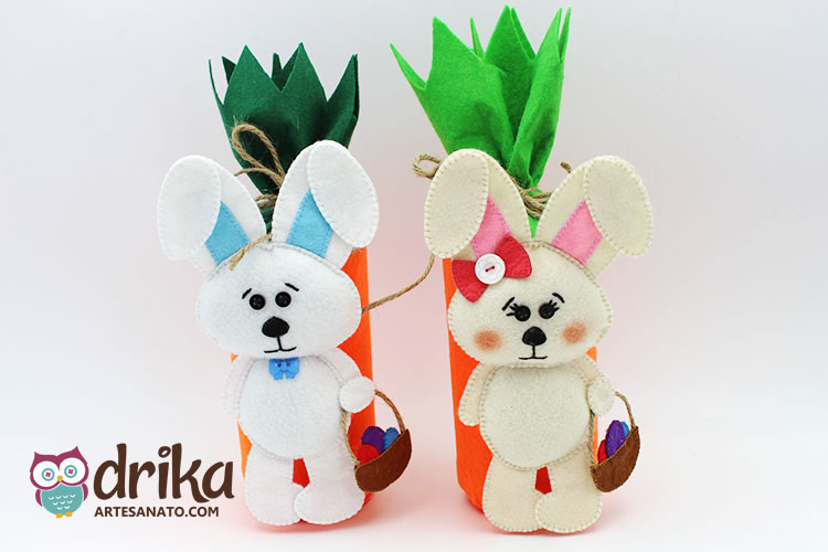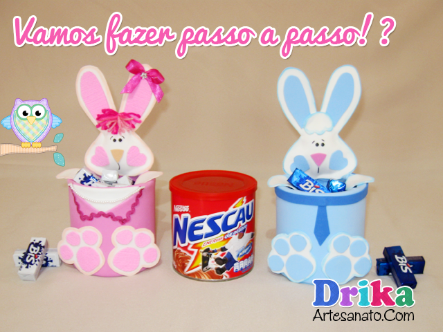 No final do post, você também vai conferir como fazer um Coelho de EVA para complementar o seu porta bombom.