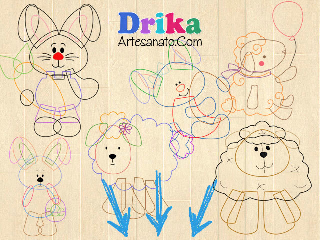 Além disso, deixamos um link no final do post para você baixar muitos moldes de coelhos e ovelhas, para que possa criar várias peças diferentes e personalizadas.