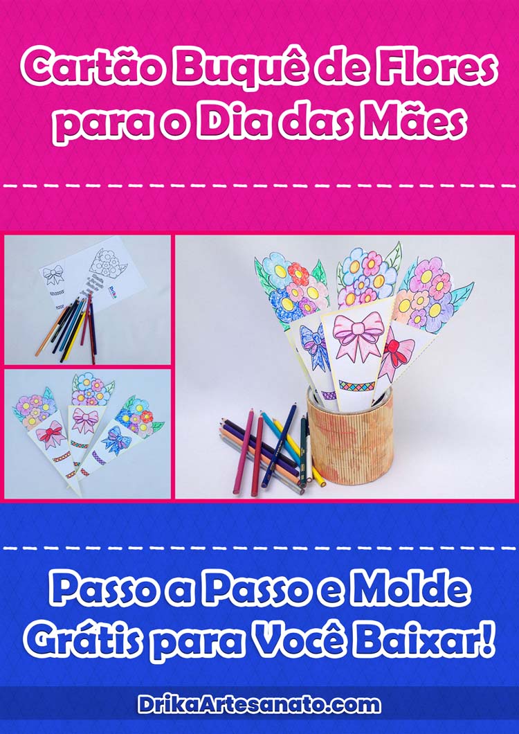 Lembrança Escolar Cartão Buquê de Flores para o Dia das Mães