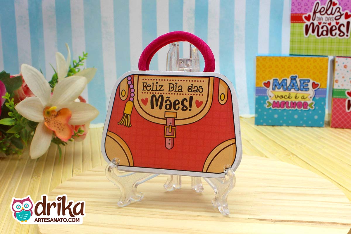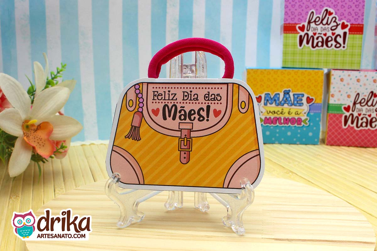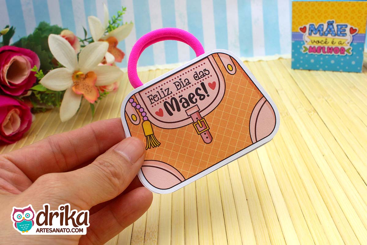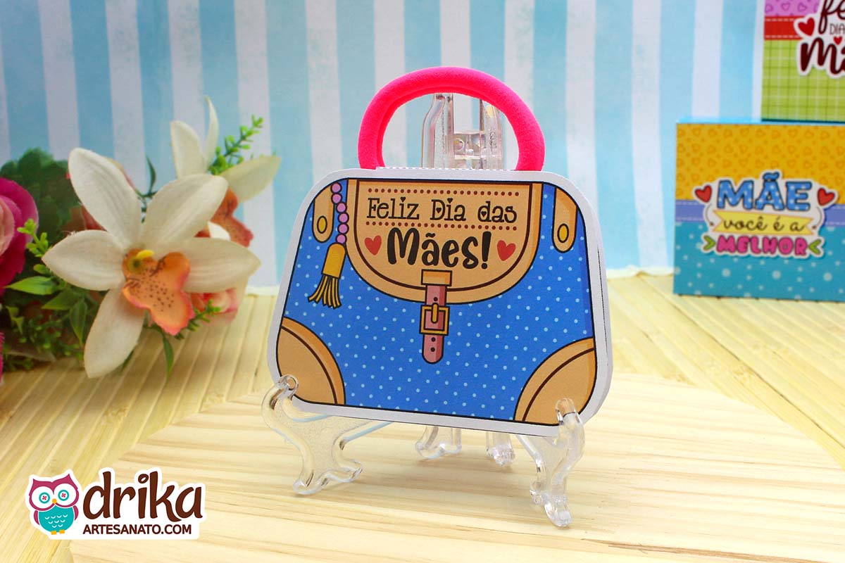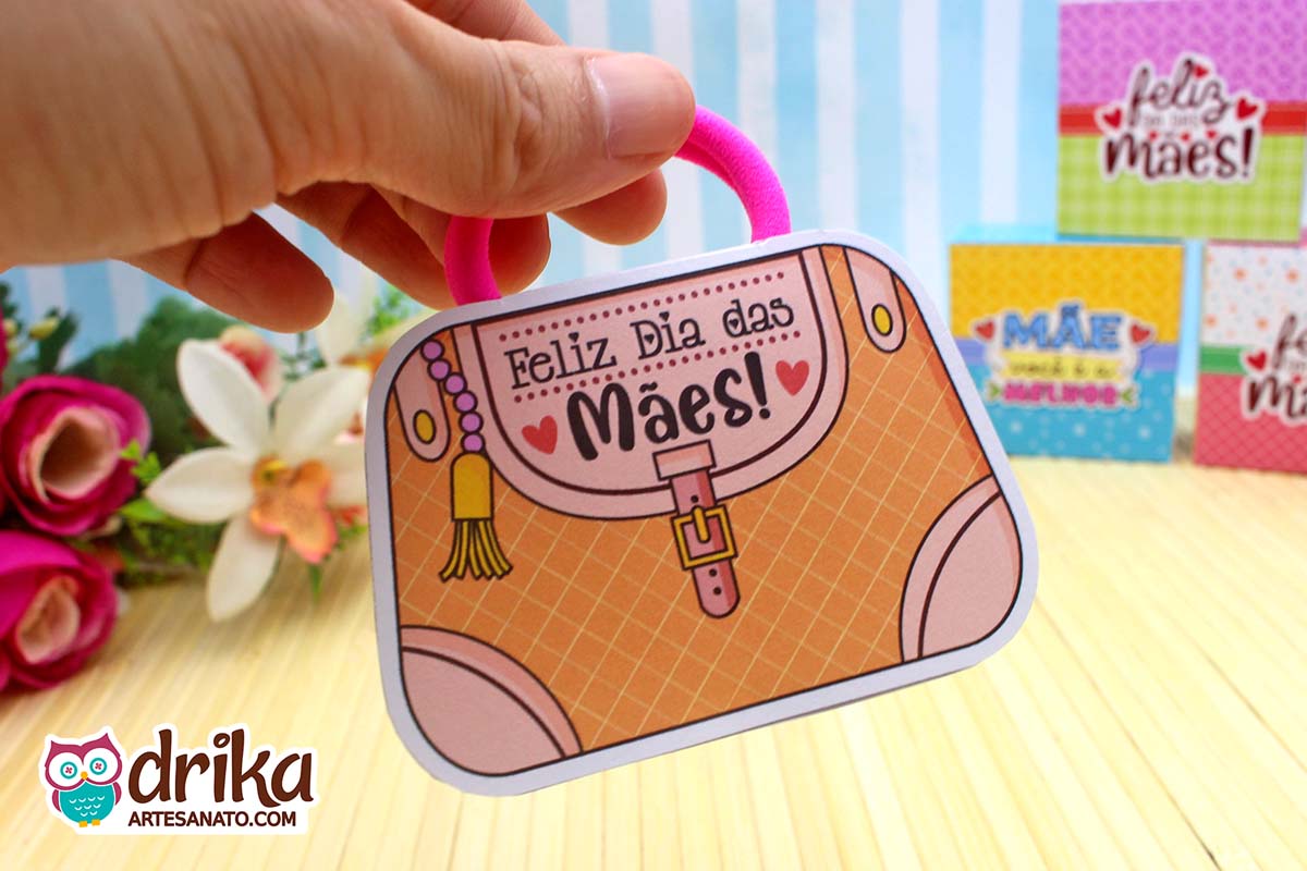 Com detalhes em rosa e a mensagem carinhosa, este modelinho combina perfeitamente com a xuxinha pink que serve de alça, unindo beleza e funcionalidade em um presente pequeno, mas repleto de significado.