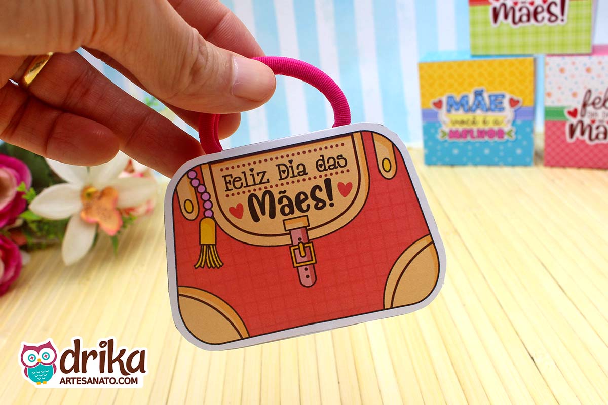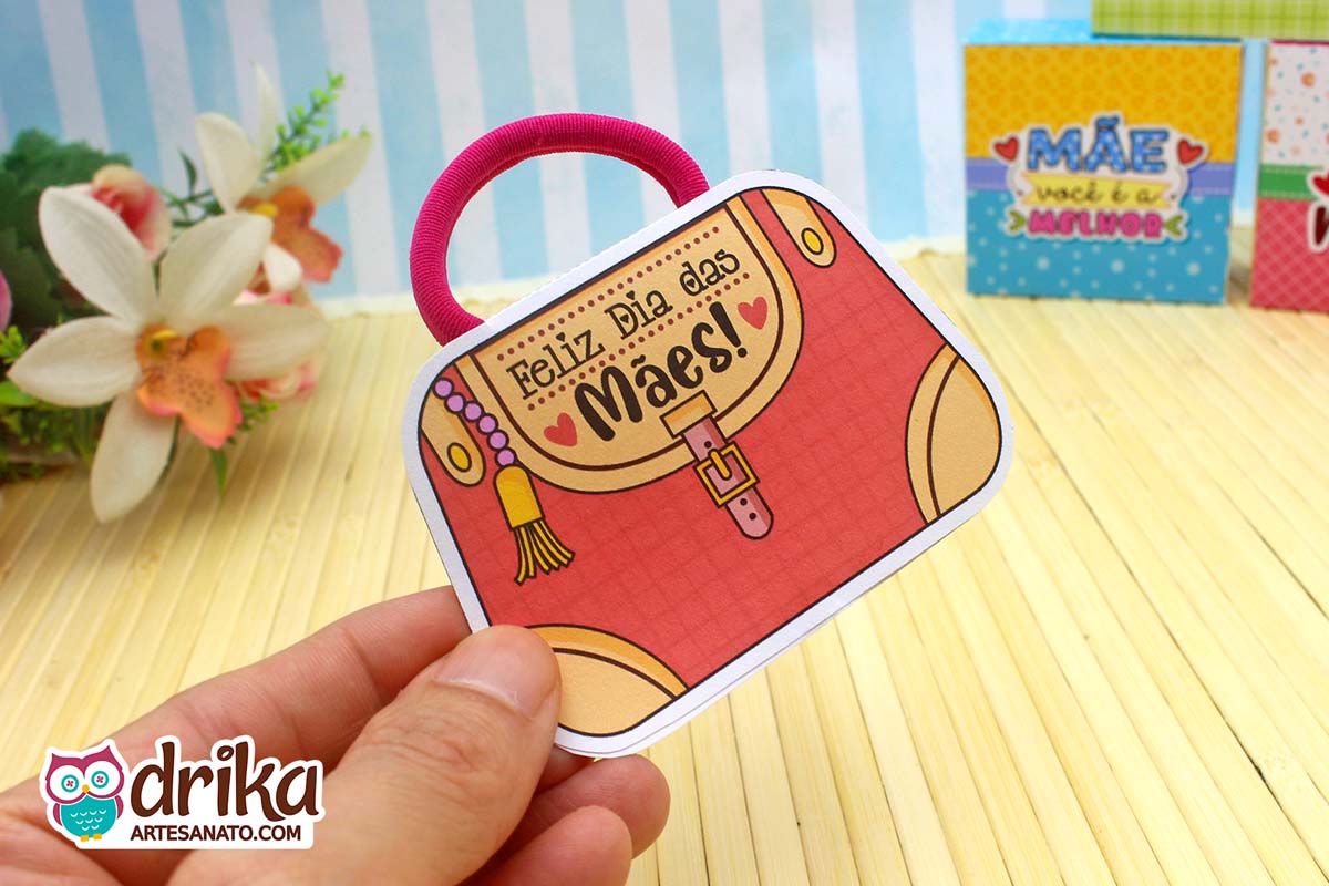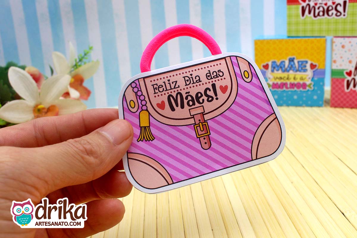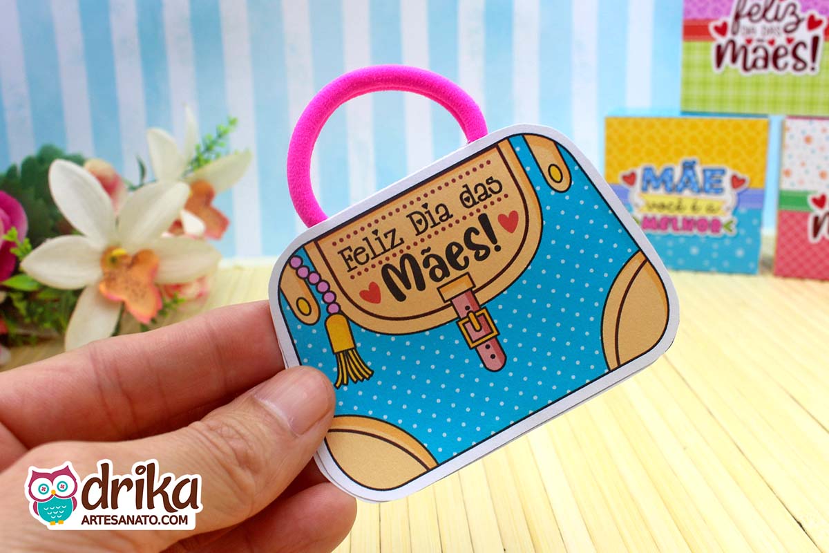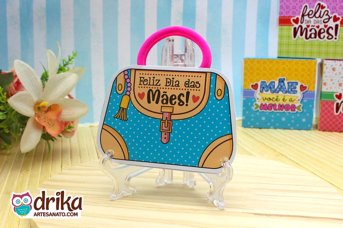Com detalhes em rosa e a mensagem carinhosa, este modelinho combina perfeitamente com a xuxinha pink que serve de alça, unindo beleza e funcionalidade em um presente pequeno, mas repleto de significado.
