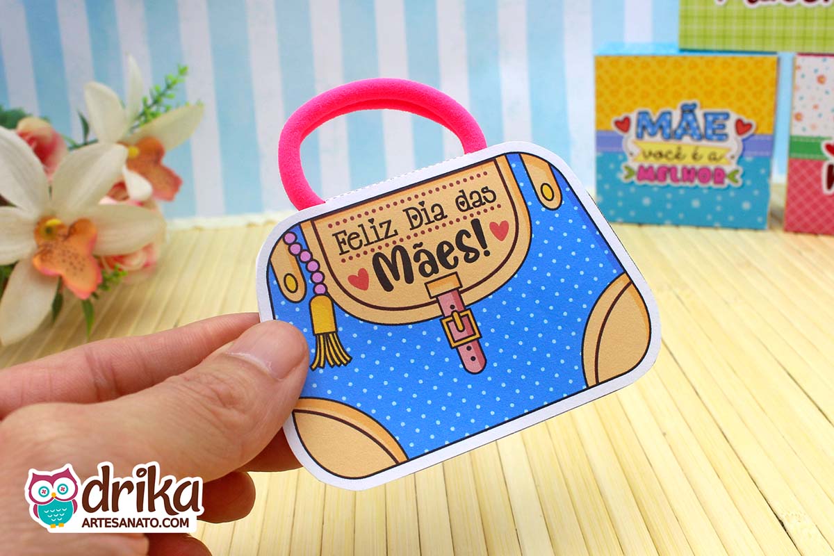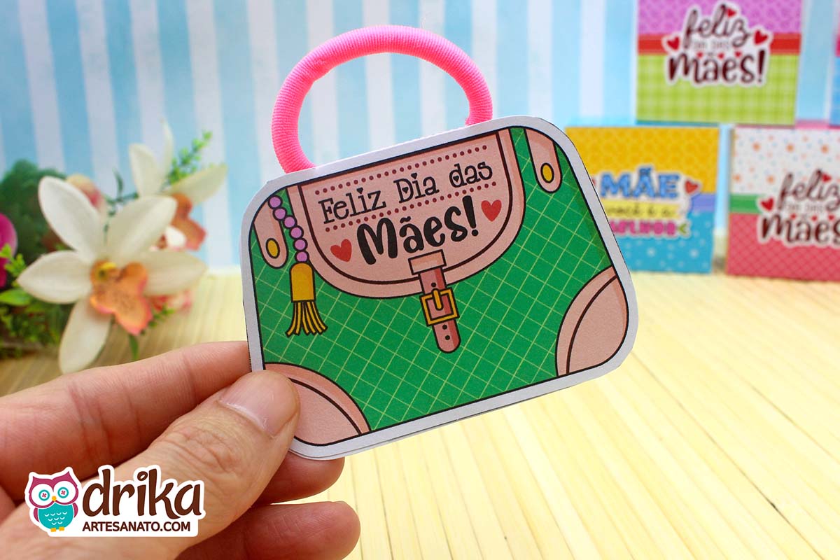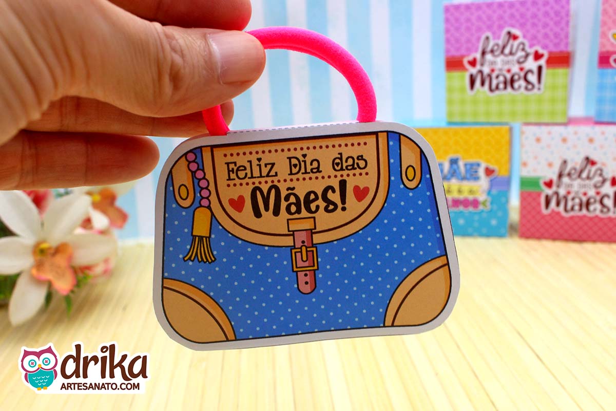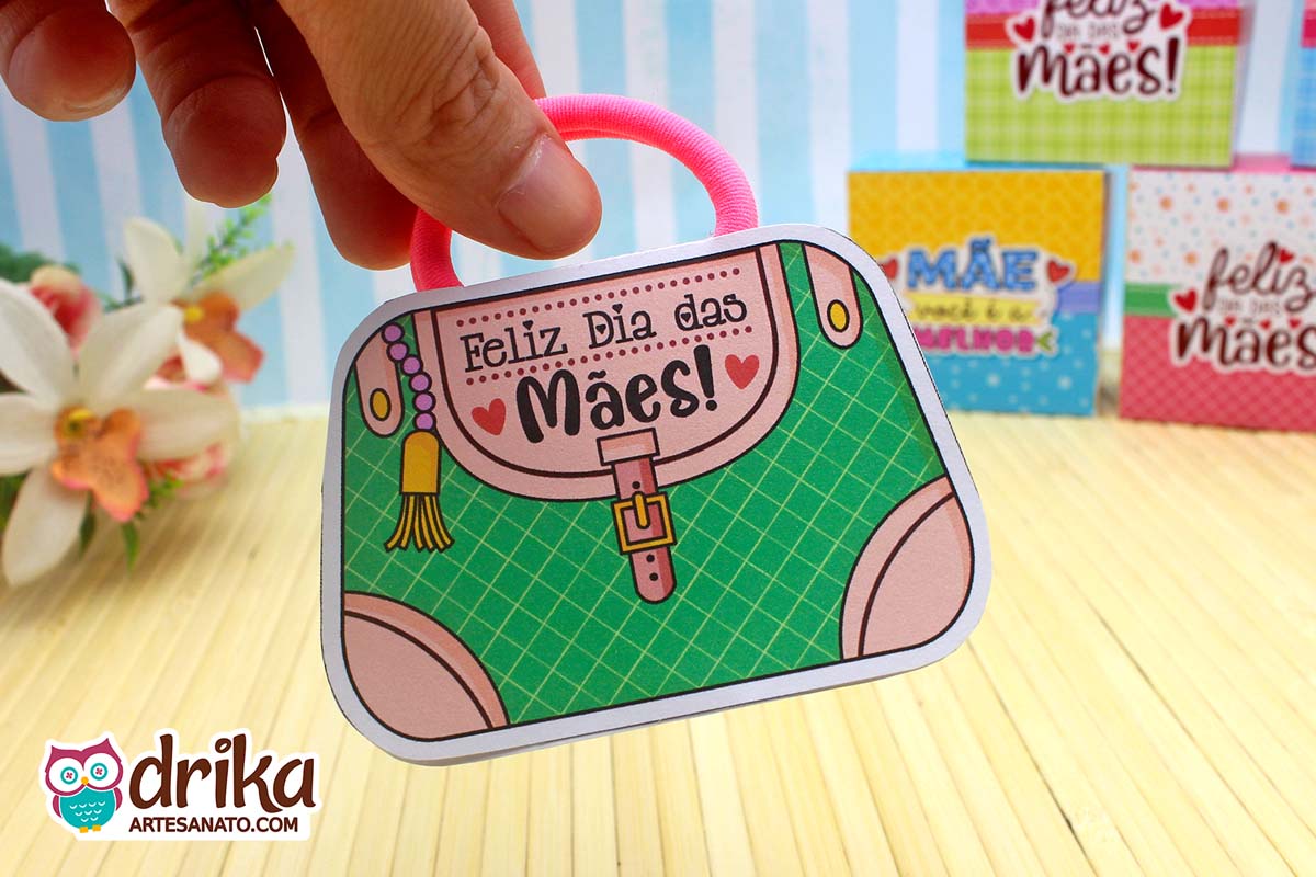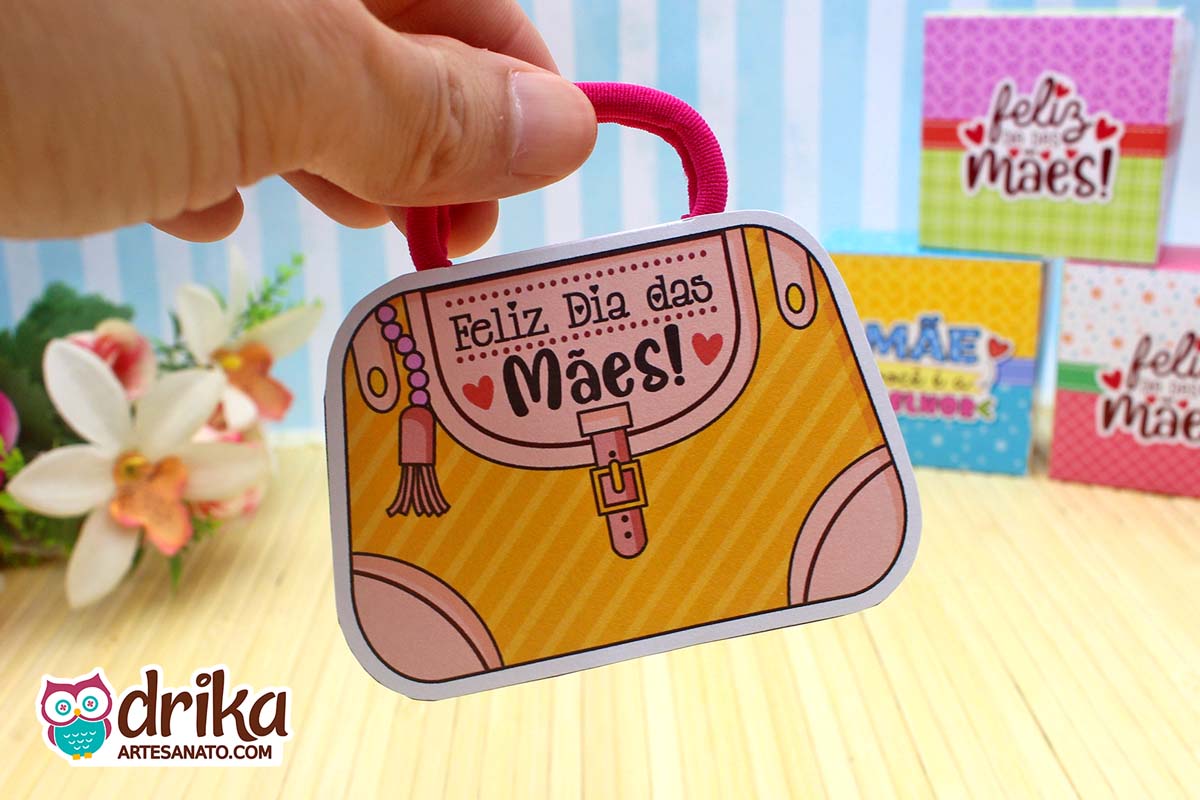 Com detalhes em rosa e a mensagem carinhosa, este modelinho combina perfeitamente com a xuxinha pink que serve de alça, unindo beleza e funcionalidade em um presente pequeno, mas repleto de significado.