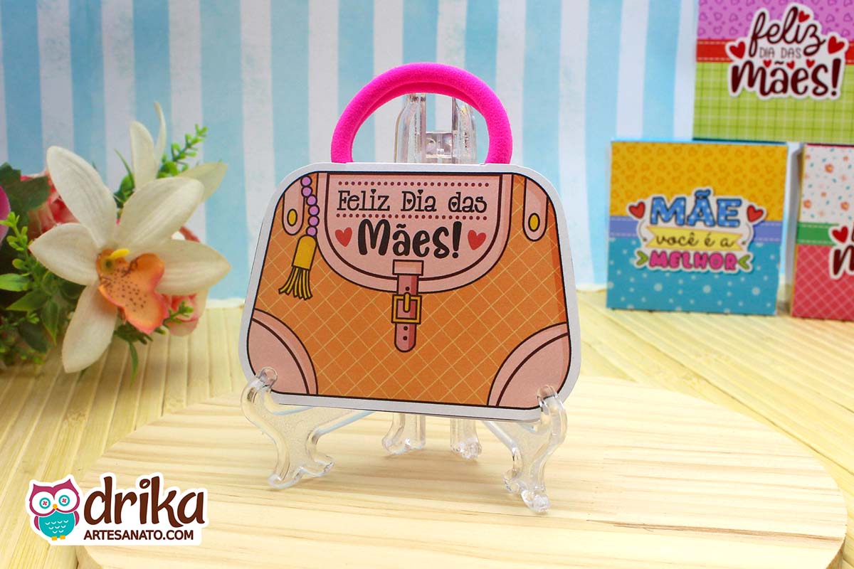 Com detalhes dourados nas laterais e a mensagem especial, ela transforma uma simples xuxinha de cabelo em um presente memorável que as mães poderão usar no dia a dia.