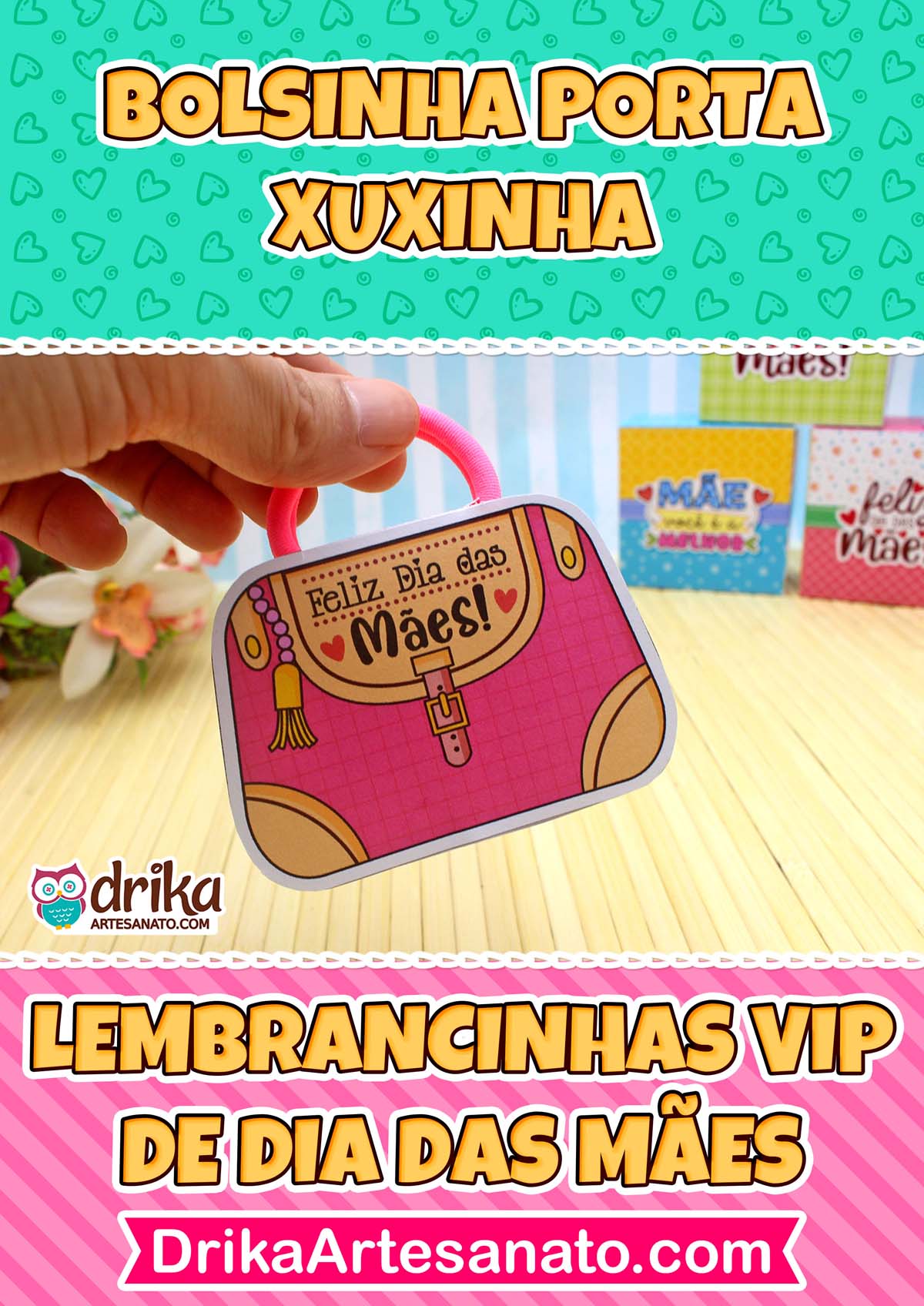 Esta bolsinha porta xuxinha é apenas uma das joias que você encontra em nossa Coleção VIP de Lembrancinhas de Dia das Mães!