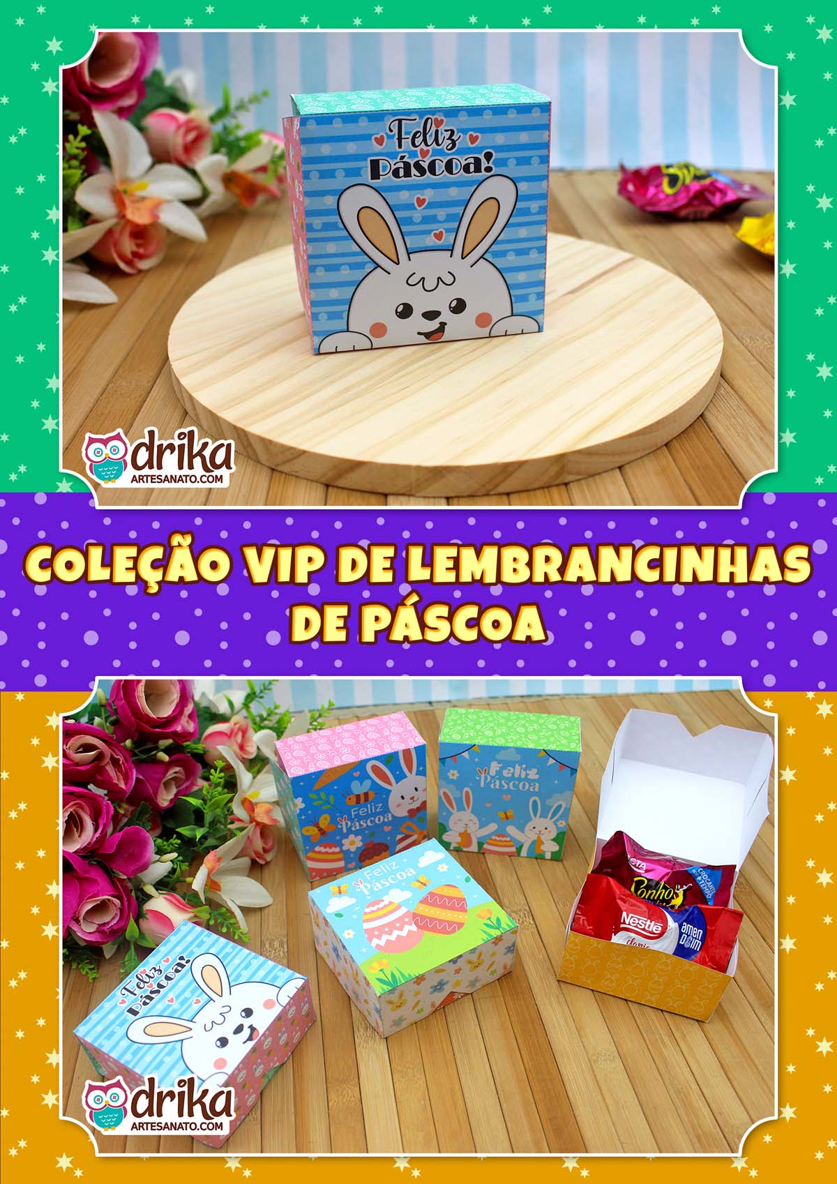 E essas caixinhas encantadoras são apenas um gostinho do que você vai encontrar na nossa Coleção VIP de Lembrancinhas de Páscoa!