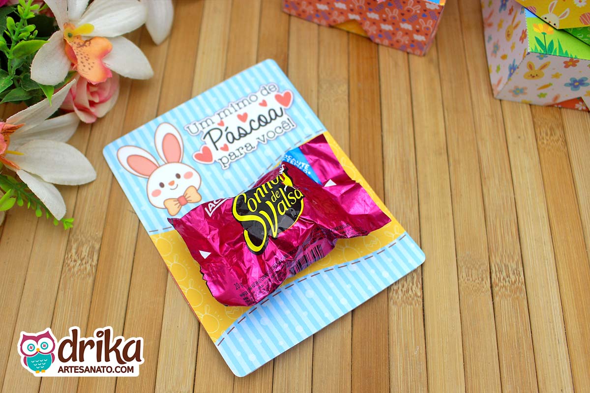 Lembrancinha de Páscoa Simples e Barata: Cartão Porta Bombom Delicado
