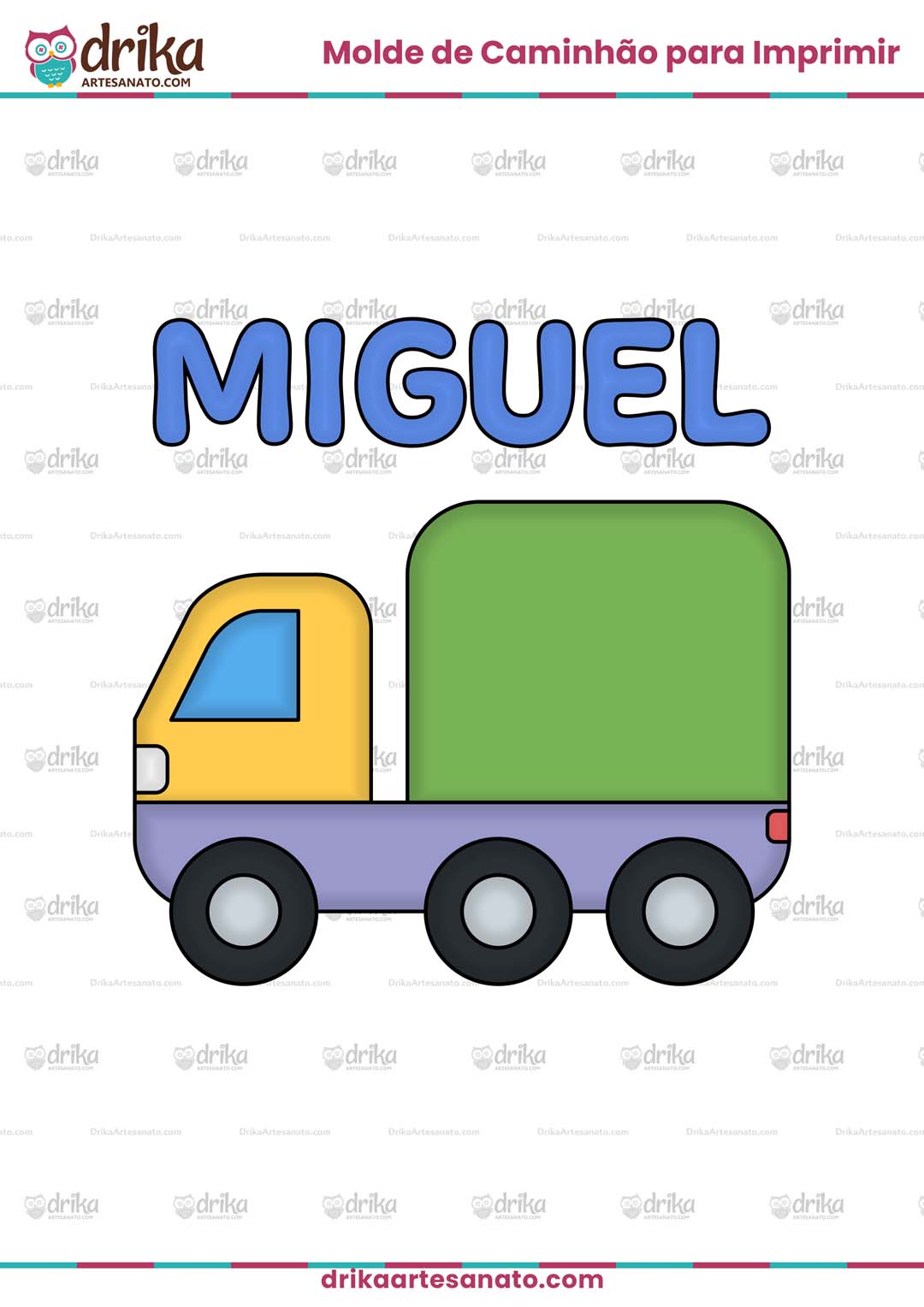 Olha como fica interessante com o molde do nome Miguel junto ao caminhão! Que tal uma fraldinha com este aplique!?