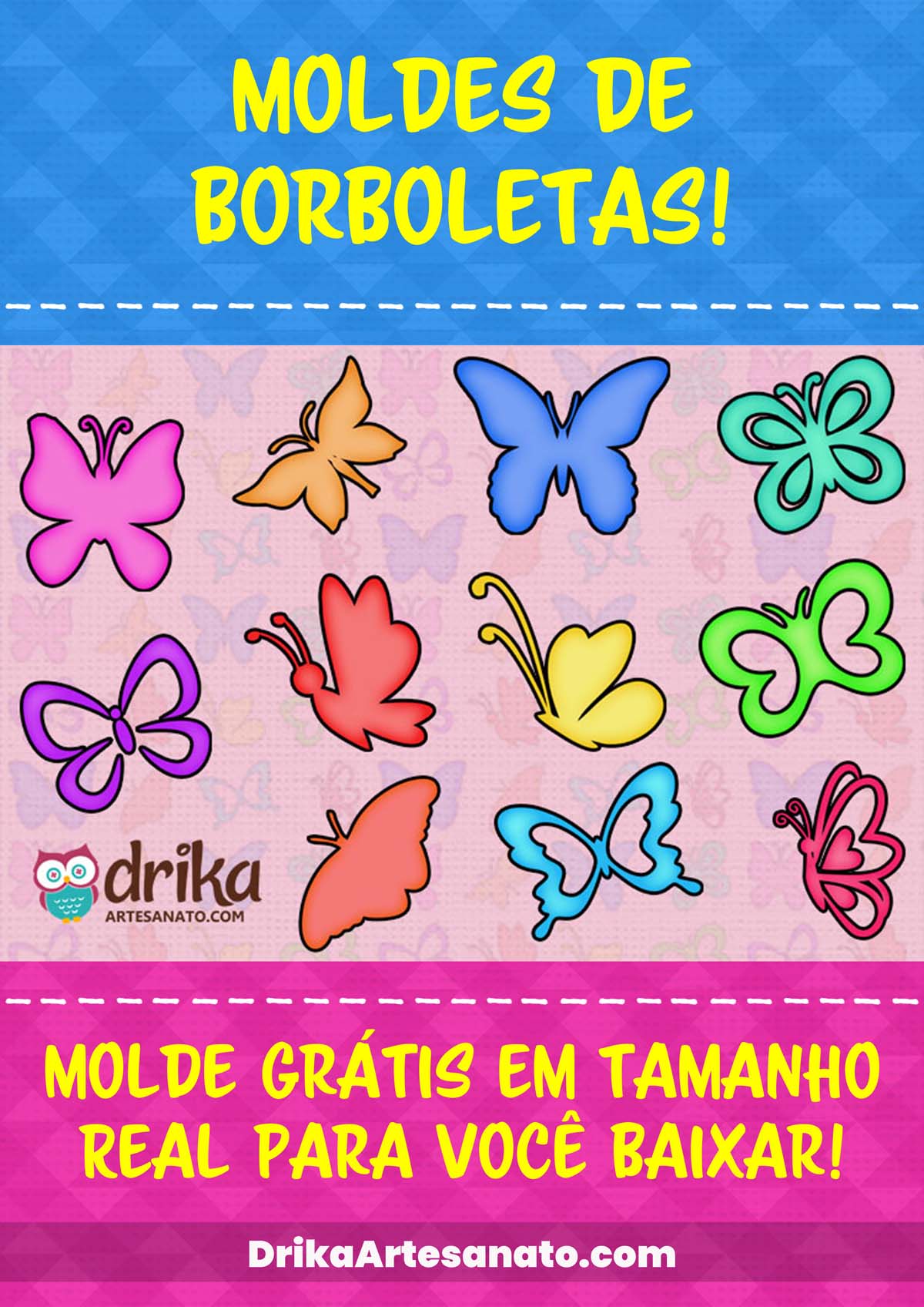 E para finalizar com chave de ouro, um banner super colorido com moldes de borboletas grátis em tamanho real para você baixar agora mesmo!