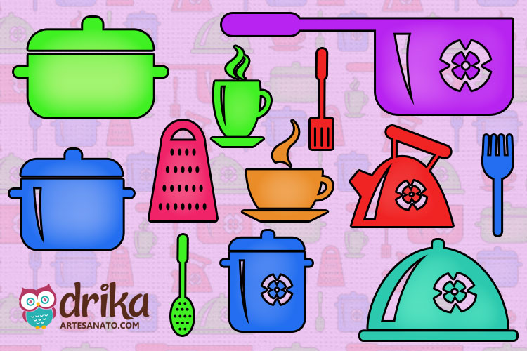 Não deixe essa oportunidade passar! Clique no botão abaixo da imagem e tenha acesso a todos os 80 moldes de utensílios de cozinha.