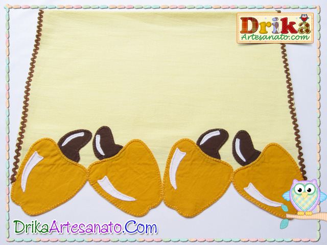 Este modelo de caju, usamos um pano de prato amarelinho, para combinar com a cor dos cajus.