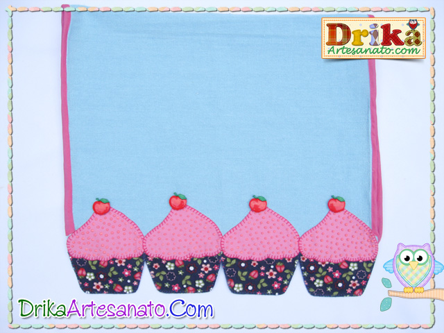 Pano de Prato com Patch Aplique de Cupcakes e Flores de Feltro
