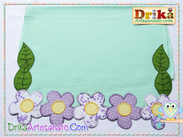 Veja que delicado que ficou esse pano de prato com as flores e folhas.
