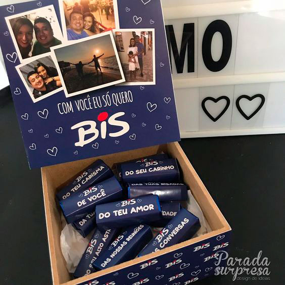 E que tal uma caixinha surpresa recheada de doces e guloseimas preferidas do seu amor?