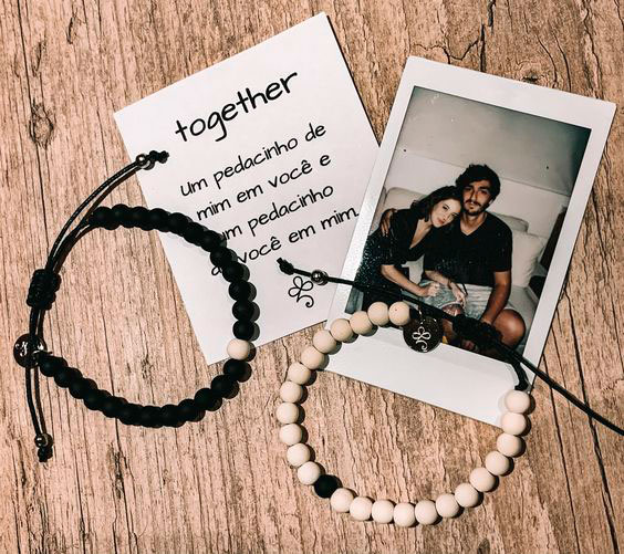 Uma ideia é a pulseira do casal, com modelo para ela e para ele.
