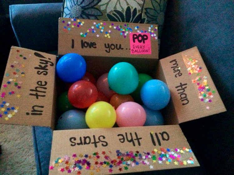 Em cada balão, inclua um presente ou um vale presente. Assim, para descobrir a surpresa, o namorado terá que estourar todos os balões.