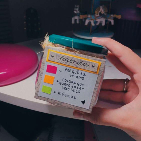 Outro clássico presente de aniversário DIY, que não deixa de ser uma surpresa para namorado, é o potinho do amor.