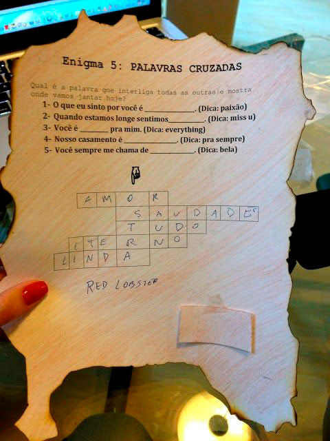 A ideia é que o namorado seja motivado a procurar o presente ou a surpresa que você preparou para ele.