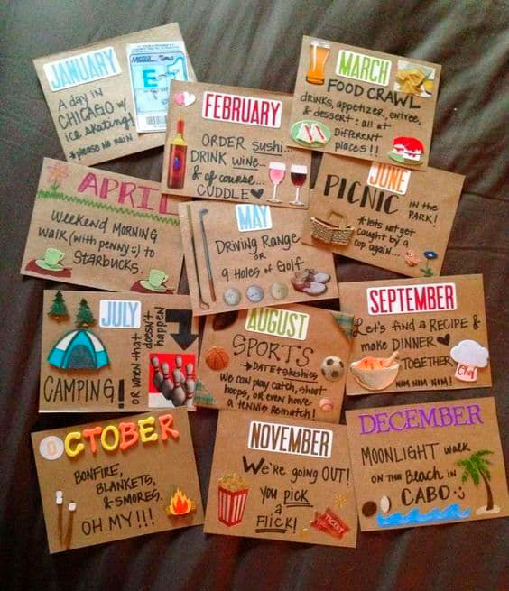 Que tal criar um calendário com encontros diferentes a cada mês? Pode ser um jantar romântico, um piquenique no parque, um dia no spa ou até mesmo uma viagem surpresa. A criatividade é o limite!