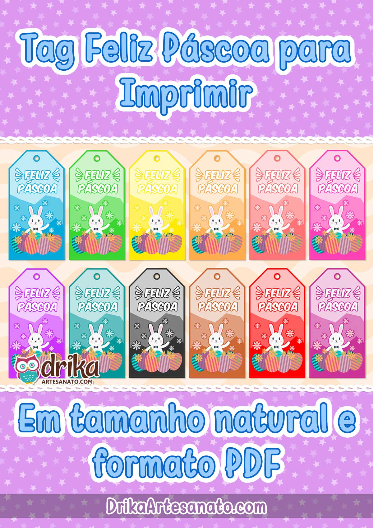 Imprima nossas Tags Feliz Páscoa em tamanho natural e crie lembrancinhas incríveis!